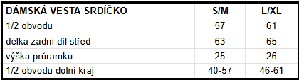 Tabulka velikostí:
